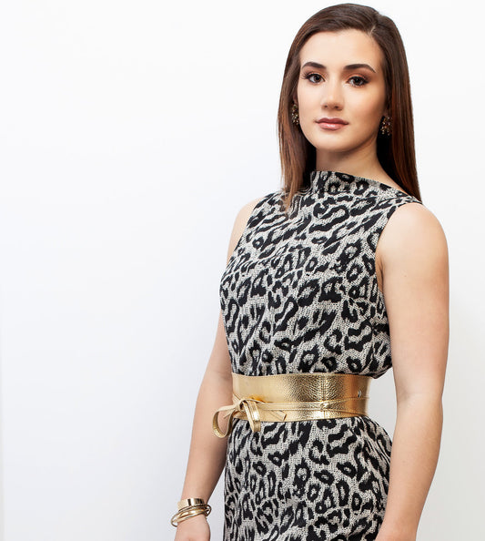 Sleeveless Bateau Neck Dress - Snow Leopard